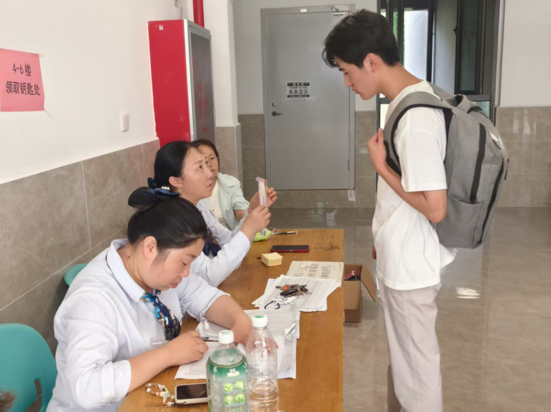 迎新期间,各楼栋值班室专门办理领取宿舍钥匙等,无需长时间排队,为新生及家长提供清晰的宿舍指引,确保迎新入宿服务高效有序、新生入住安心舒心。