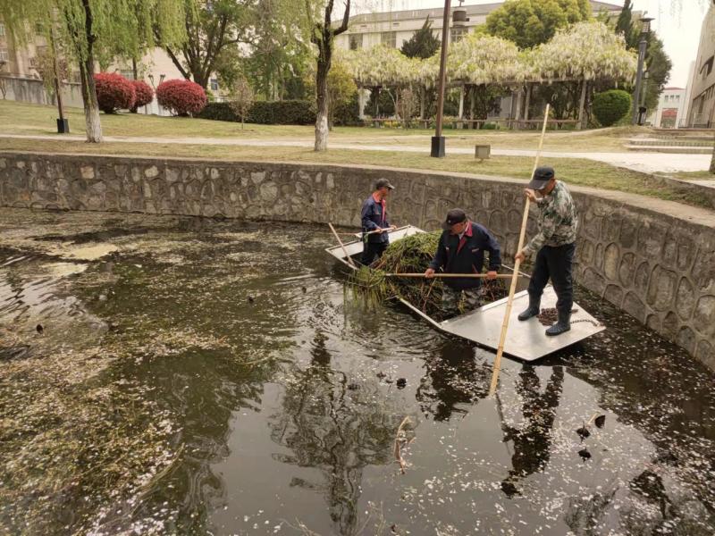 常言道:“人间最美四月天,不负春光与时行。”四月,淮师校园里花红叶绿、百花争艳,正是养护、修整花木的最佳时节。为进一步打造优美、整洁的校园环境,长江路物业抢抓时机,全面启动“校园美颜”工作,开展了净化镜月湖水面环境、养护校园草坪、治理树木病虫害等一系列美化校园环境的特色活动。
