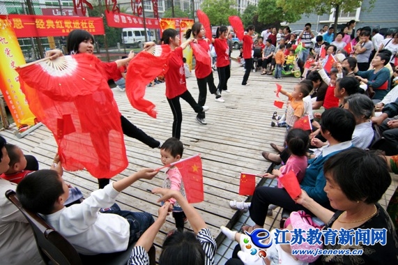 学生们为居民表演红色舞蹈