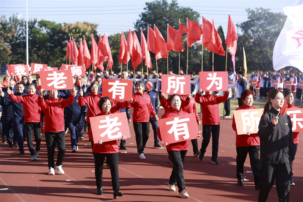 图为淮师第二十八届学生田径运动会暨第十六届教职工运动会开幕。记者唐瑀摄