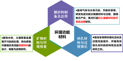 面向碳中和、碳达峰“双碳”的战略目标,结合区域环境治理与特色产业发展需求,紧扣环境功能材料领域的前沿技术趋势,研究中心致力于高性能膜材料、吸附材料及环境催化材料等材料领域的关键技术和工程应用研发,促进重大科技成果的转化和应用,具体研究方向包括,先进膜材料与膜过程、矿物材料与环境修复和纳孔材料与过程强化,以及单元技术开发与集成。
