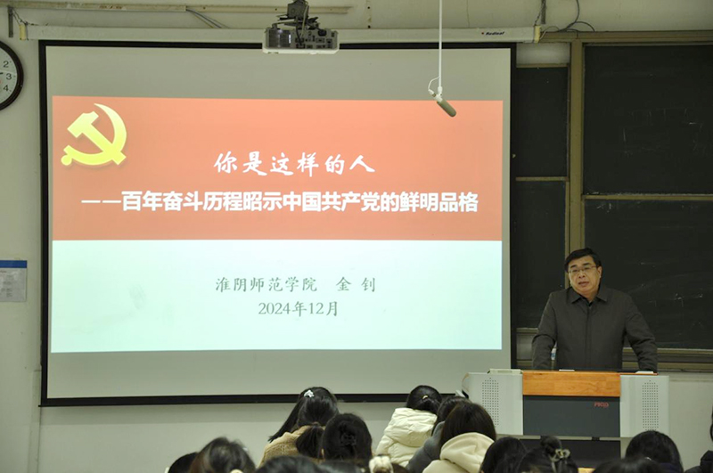 教科网12月4日电(记者赵珂艺)为进一步提高入党积极分子和发展对象的思想觉悟,强化党性修养,12月4日下午,淮阴师范学院教育科学学院于崇文楼201教室开展“你是这样的人——百年奋斗历程昭示中国共产党的鲜明品格”专题讲座,特邀淮阴师范学院原工会主席金钊老师担任主讲嘉宾,本次活动由教科院关工委主任葛军主持,学院党员、入党积极分子、发展对象参与。