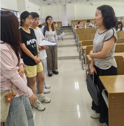 图为学生对刘从宝、张青阳老师讲座内容进行研讨