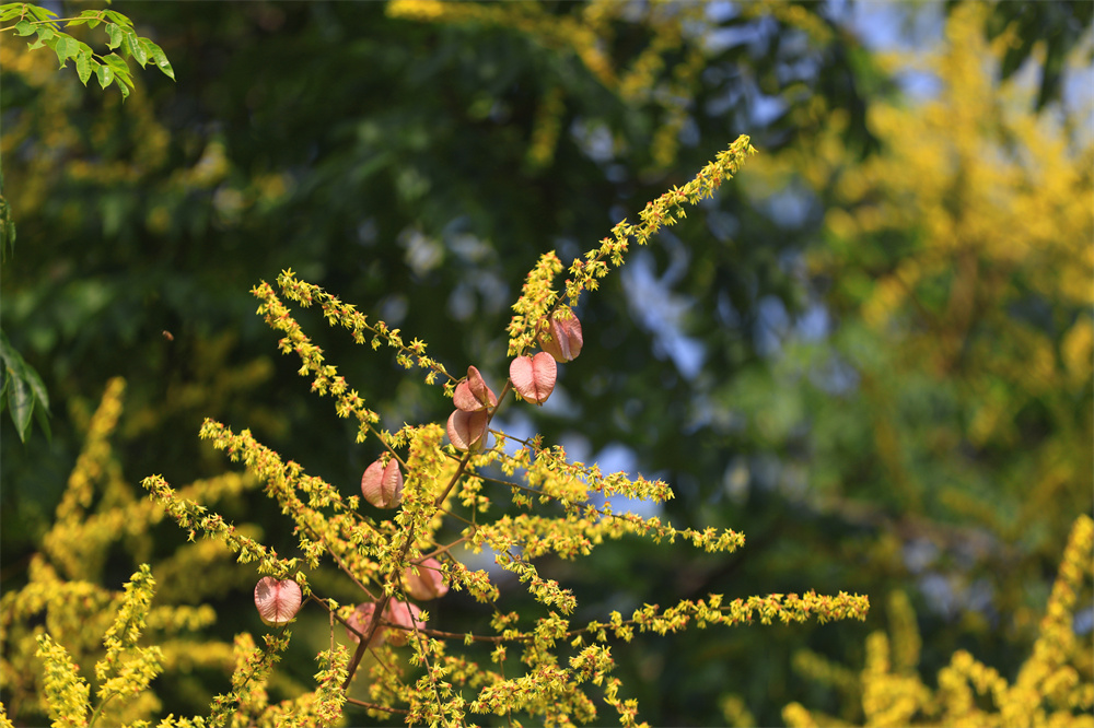 编者按校园栾树迎来全盛期,满枝金黄摇曳生辉,落花铺就秋日地毯。从教学楼窗边到林荫道尽头,处处皆是限定秋光。去年初夏的缤纷犹在眼前,今秋的鎏金更显浓烈,时光往复,浪漫如初。
