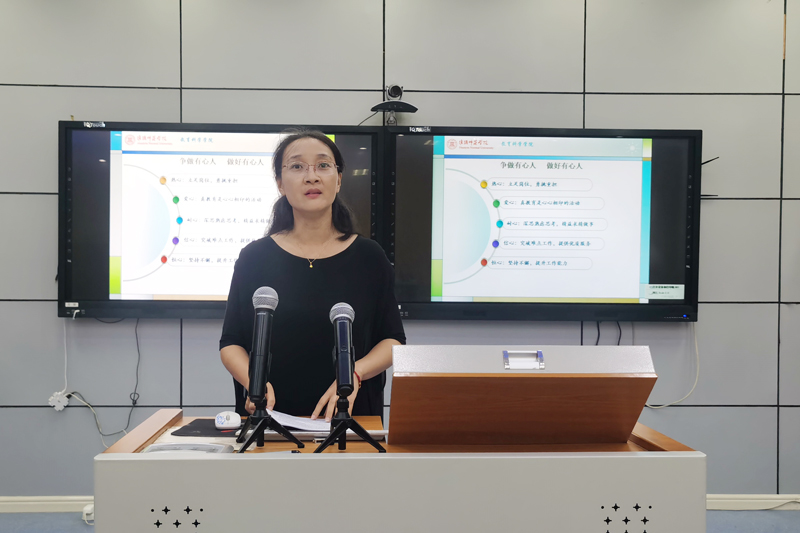 会上11位老师进行工作经验交流,其中从事19年教务工作的化学化工学院陈菊花老师认为:态度决定高度,细节决定成败,做好教务管理工作需要加强工作规范性,注重信息委员培养和作用发挥。教科院教务员赵影老师以专业认证和师范生技能大赛为切入点,分享要秉持“热心、爱心、耐心、信心、恒心”的五心育人理念,踏实做好各项工作。外国语学院教务员谭明贤老师与大家分享自己编制的“学生常见问题解答129条”及其在本科教学管理方向申报课题、开展科研等方面的工作经验。