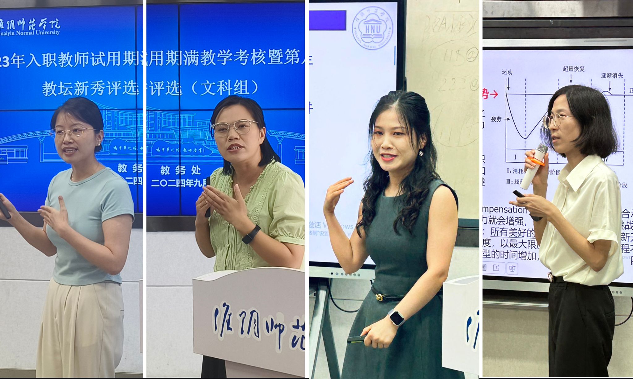 淮师新闻网10月9日电(记者王琼)近日,淮阴师范学院举行2023年入职教师试用期满教学考核暨第八届教坛新秀评选活动,来自各二级学院的36名选手参加了比赛。经过激烈角逐,文学院张美琪、教科院张欣、化院何娟、体院常永玲等4位老师在本次比赛中脱颖而出,荣获一等奖。