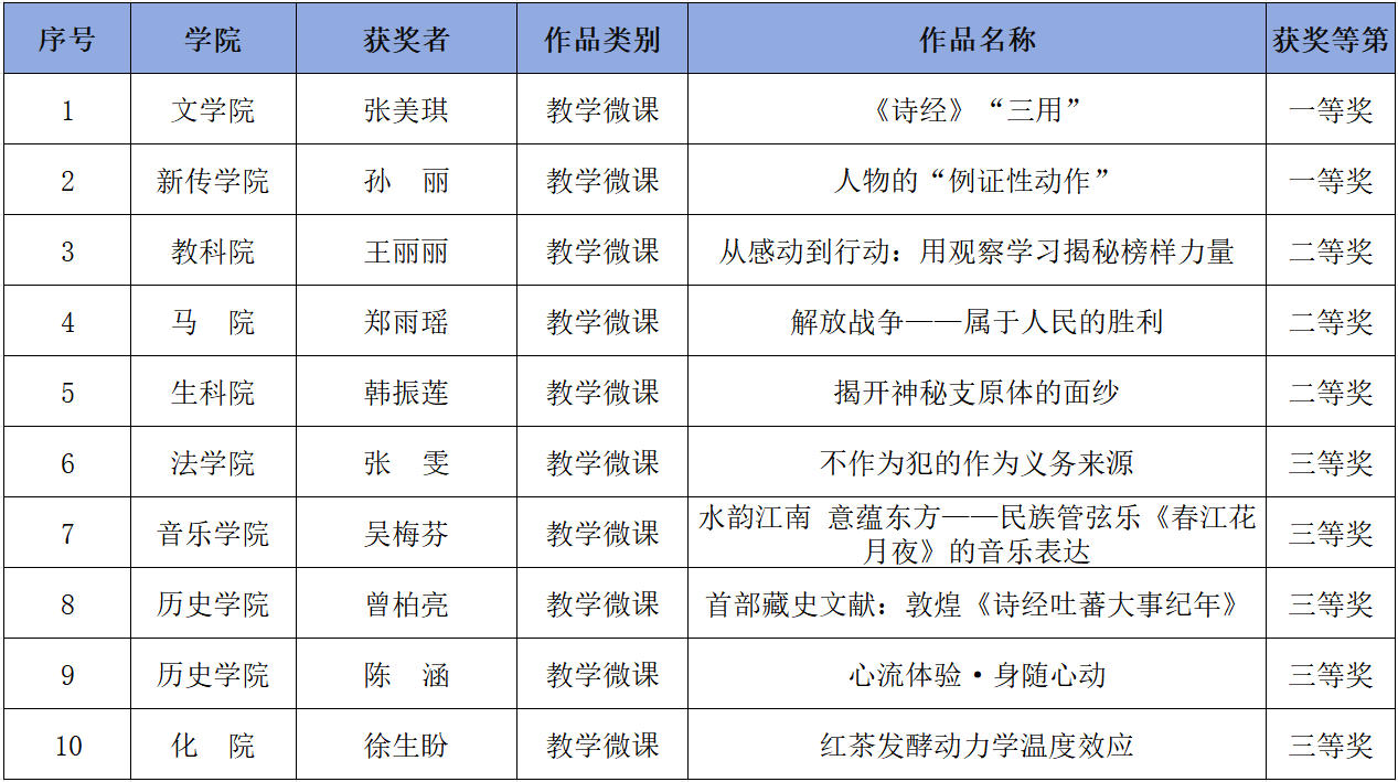 淮师新闻网9月1日电(记者王琼)近日,2025年江苏省高校微课教学比赛评选结果揭晓,淮阴师范学院推荐参赛全日制组的10项作品全部获奖,其中一等奖2项、二等奖3项、三等奖5项。