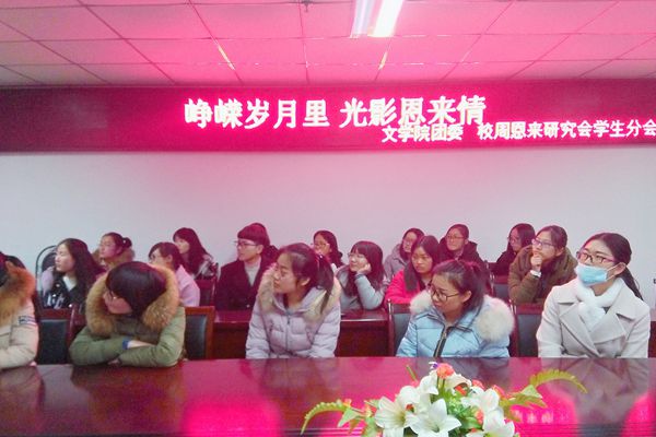 演播室里,是校周协的同学在播放纪念周恩来主题的电影;教室里,生科学院访谈周恩来奖学金获得者活动,学身边榜样、传恩来精神;周恩来精神与青少年教育基地的展厅里,一幅幅图片前,凝视的目光满含着对周恩来总理的思念与崇敬。