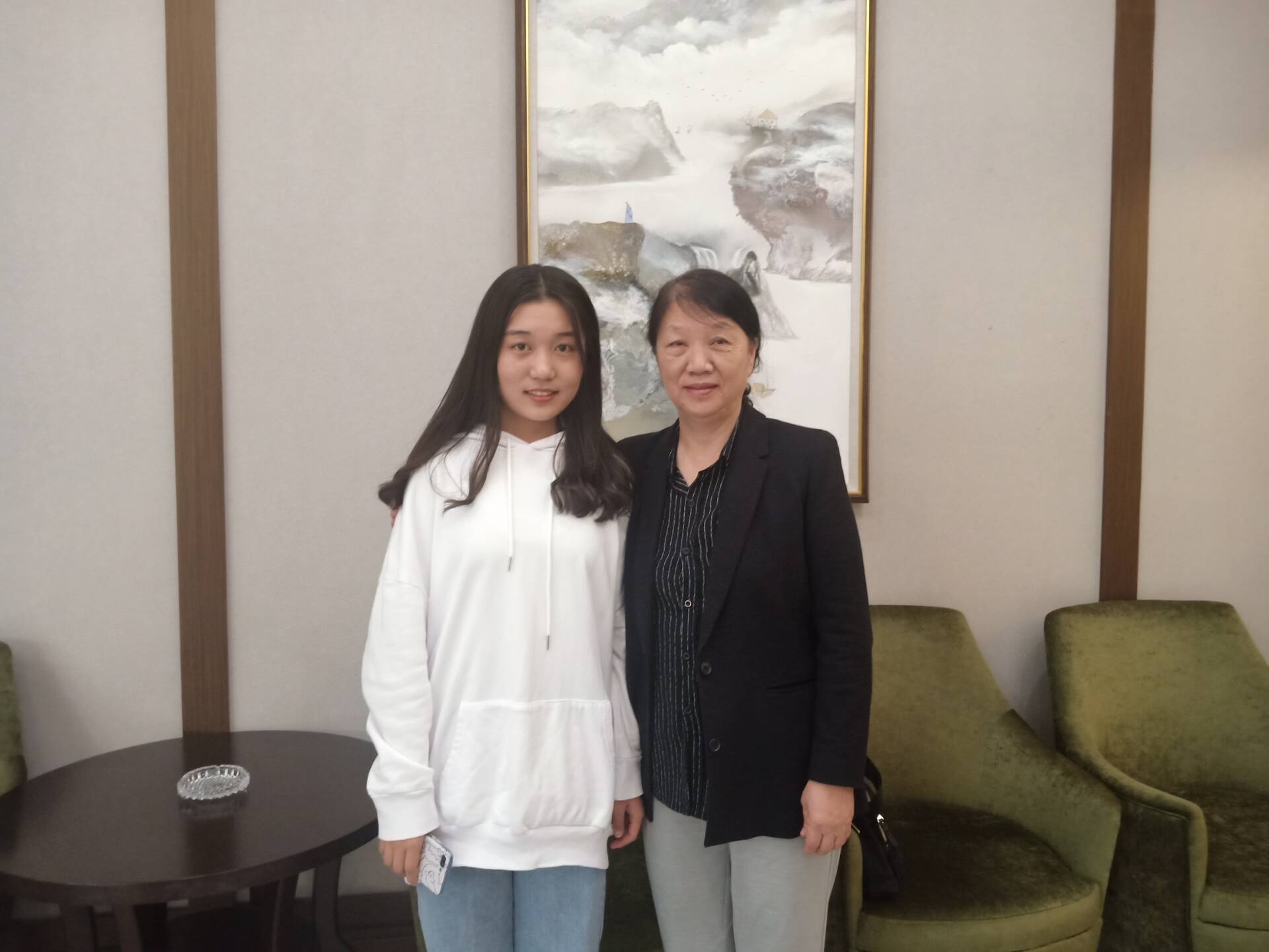 图为廖心文与记者李楠合影