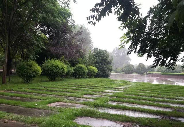 9月份的某天?不太记得了,又是收发室回来的途中,雨中经过校园西南角的位置,这里很少有人经过,其实风景倒是蛮好的
