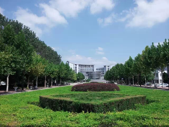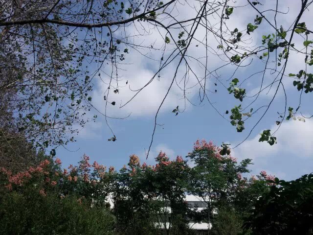 最后一张,站在主干道上看校园,仍然是喜欢的蓝天白云,可惜只能捕捉这么小的画面了,但不影响整体的美感。