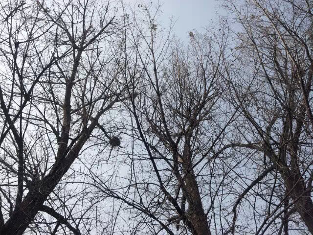 11月份某天,经过教A楼西南侧的大杨树下,这3棵树,是校园内历史最悠久的见证吧,枝头的鸟窝,也是别样的风景