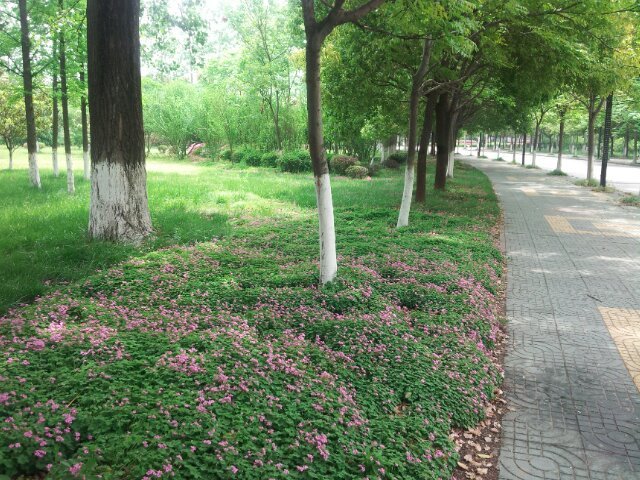 4月份下旬的某天,仍然是教A楼南侧的美景,红花绿叶,远处是木槿,这么清爽的画面,是如此养眼迷人