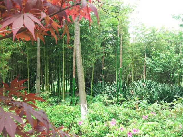 4月份拍的,主干道西侧,竹林,剑麻,红花,绿叶,红叶,这个美,真的很迷人,很养眼
