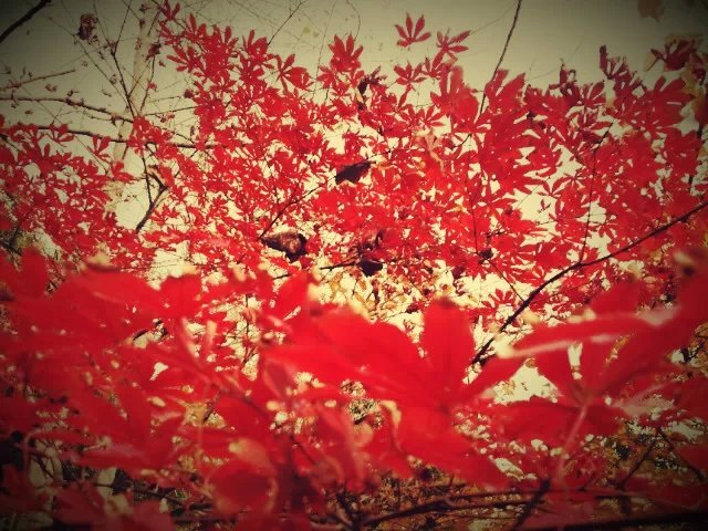 11月份,教A3楼西侧一棵小枫树,在萧条的杨树枝叶下,红的如此之美,只是,被周围杨树遮挡,算是被忽略的美吧