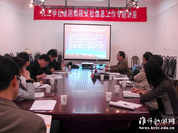 4月15日下午,九三学社淮阴师范学院支社在交通路校区美术系会议室举办信息专题讲座。九三学社淮安市委副主委陈伏涛应邀为社员作参政议政工作辅导。党委组织部、统战部正处级调研员于洪美同志参加报告会。报告会由九三学社淮阴师范学院支社主委张德顺教授主持。