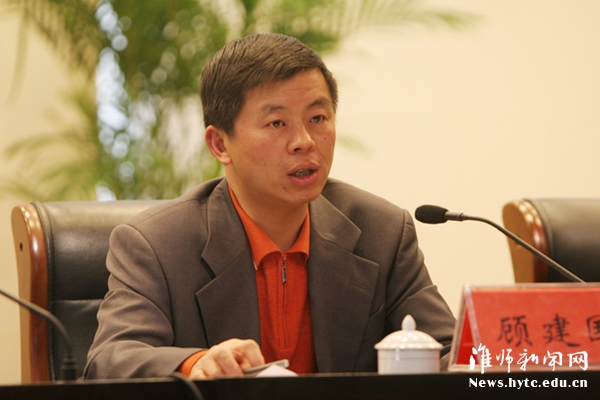 首先,党委副书记、纪委书记顾建国向大家传达了淮安市委组织部《关于开展高校院系与城市社区党建共建暨大学生志愿者进社区活动的通知》的精神,就共建对象、共建目标、工作程序、工作职责等向大家作了详细的说明。