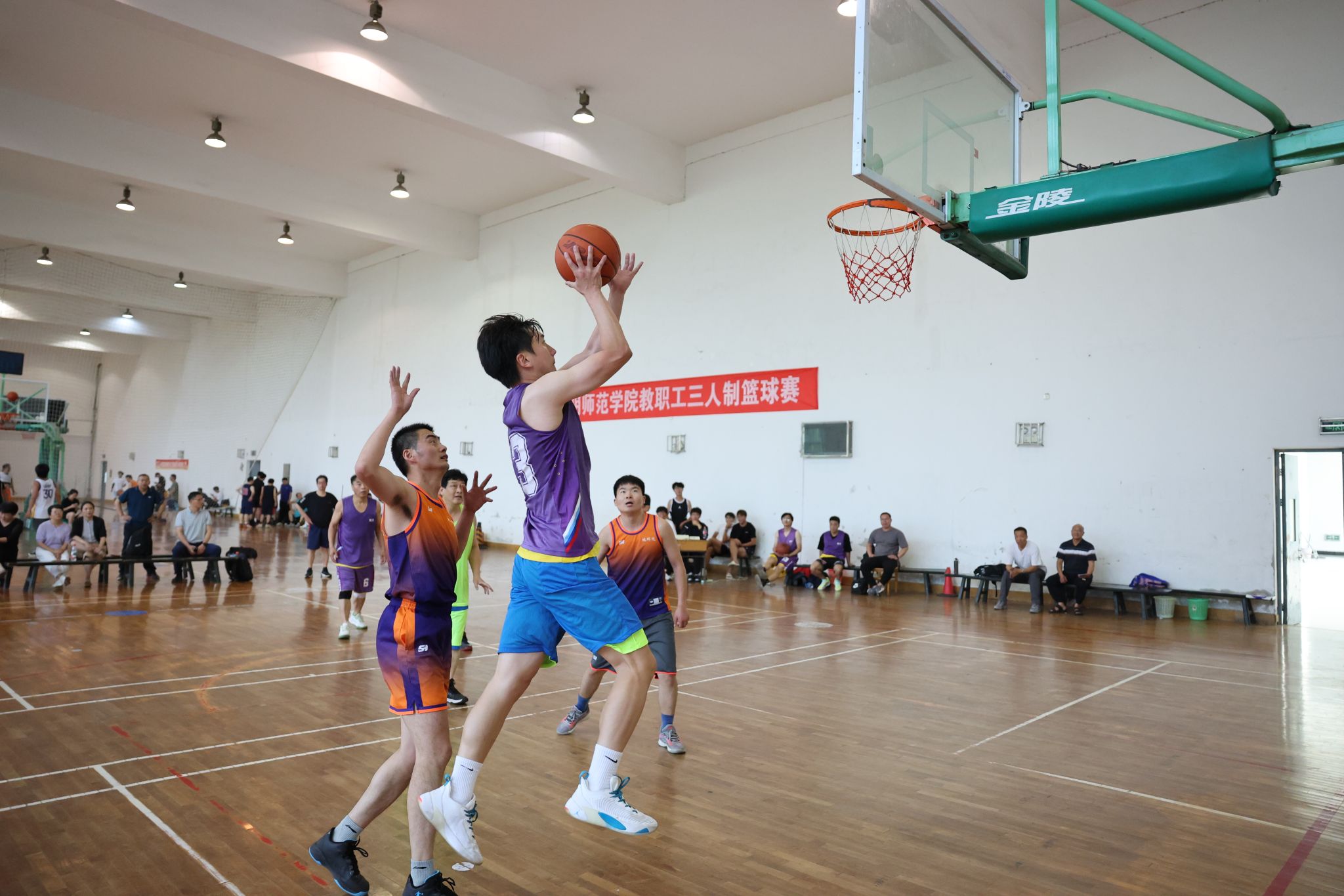 图为淮师举办2025年教职工三人制篮球比赛。记者张银河摄