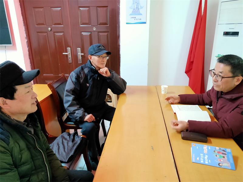 图为王洪鸣与社区党员交流。记者孙伟摄