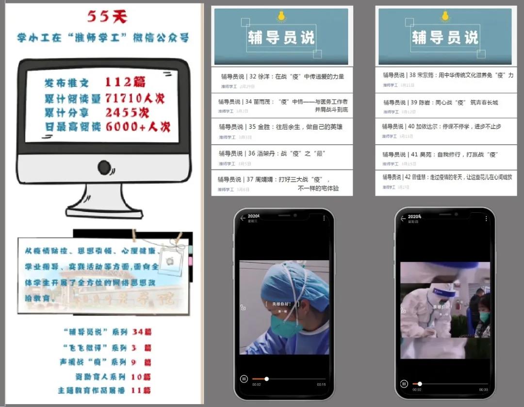 守好责任田。辅导员们自觉担当学生防疫的组织者、宅家生活的指导者、“五项教育”的实施者。积极挖掘疫情防控中的育人因子,化身网络主播、高能写手、制作达人,通过十余次自制视频、百余篇网文、千余次云班会,开展网络教育,为学生成长成才注入强大思想动力。
