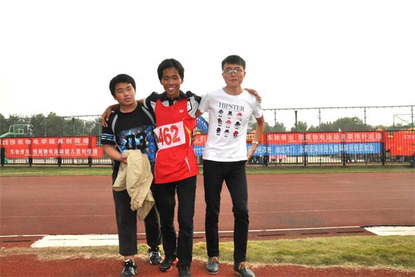 志愿者们一直守在运动员们身边,帮他们别上号码牌,及时递上一瓶水,为运动员提供最贴心的服务。特别是1506班刘涛同学参加男子5千米长跑时,所有志愿者都围在跑场边为他鼓劲,现场热烈的气氛达到了顶点。当他第一个冲过终点时,两位志愿者立刻奔向他,搀扶着他慢走放松,不住地称赞他的勇敢。