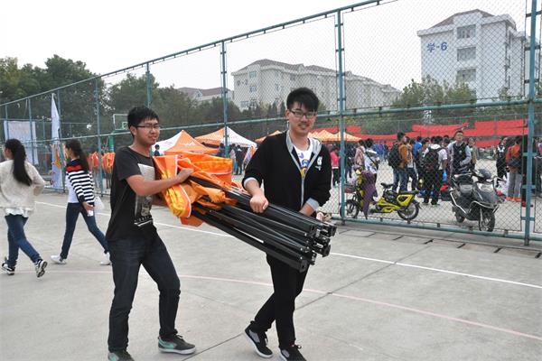 生活部提前借来帐篷和桌椅,为运动员搭建了一个宽敞的休息点,并且安排志愿者值班,为运动员提供水、食物和毛巾。生活部部长羊强同学一边搬着帐篷,一边回答道:“我们部门做的事比较琐屑,但只有做好这些后勤工作才能让运动员们更加安心地比赛。”直到运动会闭幕式结束,生活部还安排了相应人员清扫场地、归还物品,就连运动场上挂着的横幅也都一一摘下。