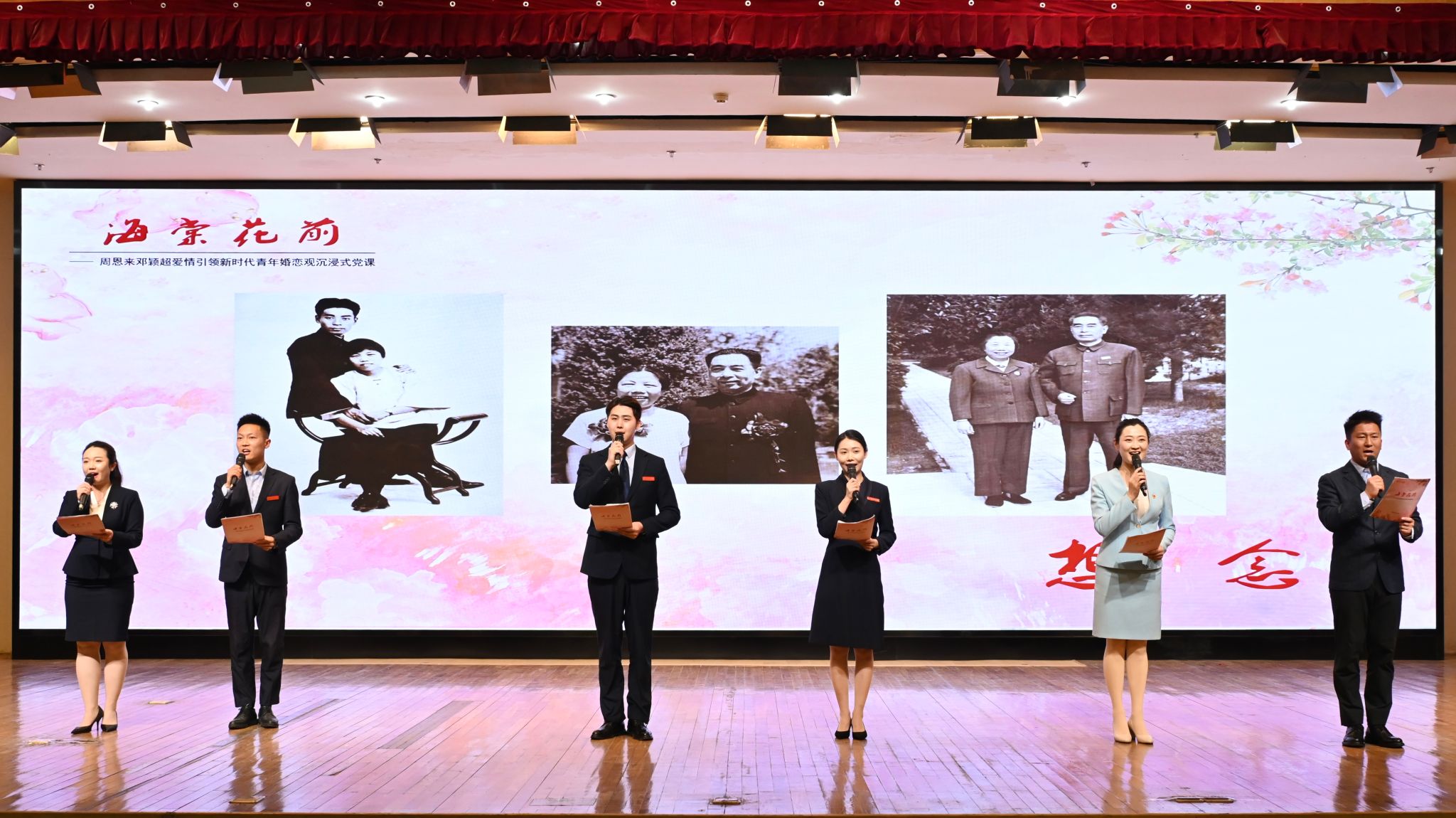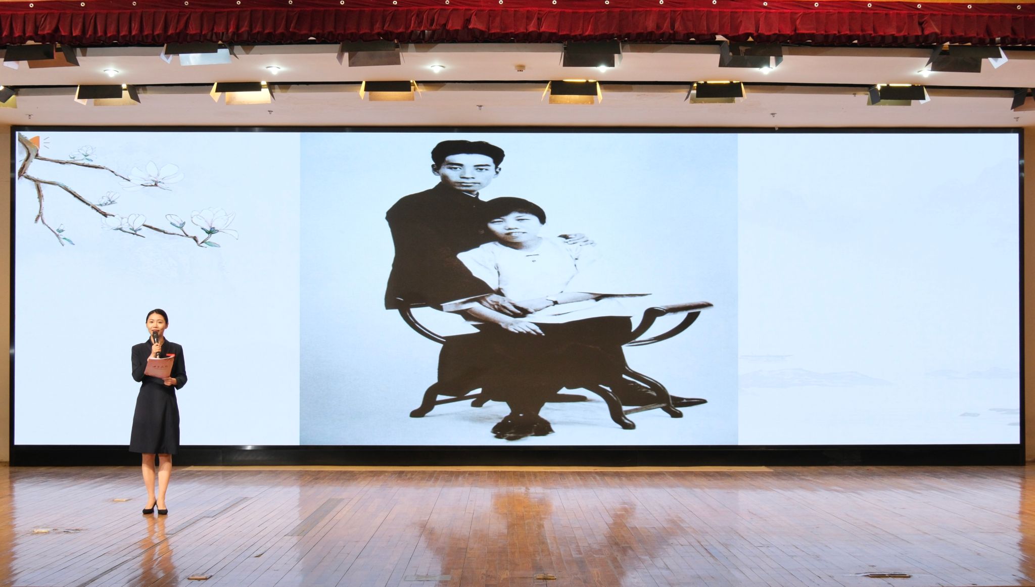 活动邀请周恩来纪念馆的讲解员们来到学校开展宣讲,他们用伟人的爱情故事和身边人的幸福故事,为同学们带来了一场心灵的洗礼和精神的盛宴。散文诗《好一朵木棉花》以和缓轻盈的节奏追忆邓颖超同志生平,展示了她身上温柔而坚毅的女性力量;故事讲述《一个共产党员的内心世界》、散文诗《最美的情书》、情景故事《永远的战友》歌颂了周恩来邓颖超为共同的革命理想并肩奋斗、志同道合的战斗情谊;诗朗诵《走过故居》、集体诗朗诵《想念》站在人民的视角探寻无穷无尽的精神财富,抒发人民群众对革命伉俪的崇高敬意和无限思念。全国五好家庭、淮安市公安局经济技术开发区分局警务指挥室互联网警务科科长周倩,向在场的大学生分享自己深受周恩来邓颖超感染的婚姻故事,深情讲述自己与丈夫互相成长进步的“战友”爱情。淮阴师范学院音乐学院的“周恩来班”创建班级学生代表带来了歌曲《是你》和舞蹈《海棠花祭》。他们以舞蹈和歌曲的形式跨越时空界限,再度重温周恩来和邓颖超同志相濡以沫的革命爱情,在场观众无不深深为之动容。