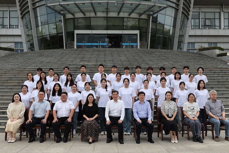 图为与会领导与毕业生代表合影留念。记者唐瑀摄