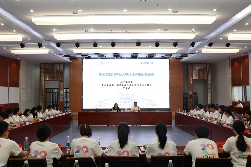 座谈会后,党委常委、宣传部部长管爱花为参会的毕业生党员讲授题为“周恩来是共产党人守纪律讲规矩的表率”的党纪学习教育专题微党课。