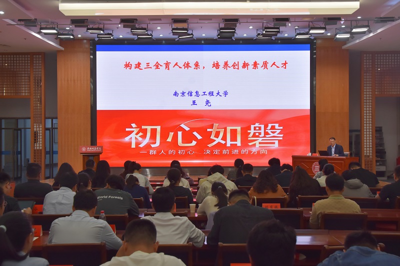 王尧教授在《构建三全育人体系 培养创新素质人才》的专题报告中,围绕教育使命与当前工作问题、构建大体系提升育人实效等维度,深入阐述了高校思政育人及辅导员发展的机制,针对教风、学风建设与辅导员发展面临的瓶颈问题,提出了系统化、多维度的培育路径,为新时代高校思政育人与学工队伍高质量发展提供了重要实践方案。