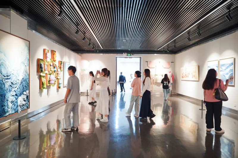 据了解,“四时桑荫”美术学院师生作品展,分为美院教师、部分外聘老师、校友以及应届毕业生作品等板块,特别展示了美术学、书法学、视觉传达设计、环境设计和数字媒体艺术五个专业学生优秀毕业作品五百余件。本次展览恰逢美院办学四十年,“美院人”始终秉承“坚守朴实、追求崇高”的淮师精神,践行“崇德尚艺,求真唯美”的院训,深耕教育一线,精研艺术创作。毕业展是本科生涯的终章课堂,亦是学子们绽放光芒的绚丽舞台。在创作过程中,同学们实现了专业素养与艺术造诣的双重突破,完成了知识积累向艺术表达的蜕变。毕业展不仅是个人求学之路的精彩答卷,更是学校教育教学改革成效与人才培养质量的生动诠释。