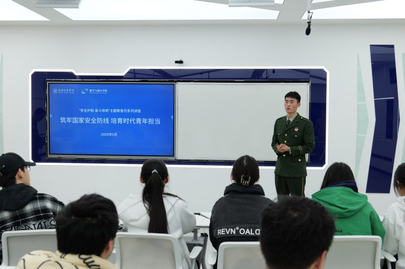 讲座中,朱贤俊上尉以国际战略格局为切入点,从第一岛链、中印边境冲突、亚丁湾护航到联合利剑军演,系统分析了中国周边地缘环境特征。从歼-20战斗机、南昌号055大驱、99A主战坦克、无人机作战到数字化步兵系统,详细介绍了中国军事科技发展成就。从南海撞机事件、黄岩岛对峙、南海仲裁案、仁爱礁“碰瓷”到美国冲绳驻军,深入解读了美国综合性战略威胁、日本军事扩张动向、南海主权争议及台海局势演变等核心议题。结合历史案例与现实数据,他强调国防安全涵盖军事、经济、文化、网络等诸多领域,阐释了“总体国家安全观”的深刻内涵,号召青年学子要“居安思危,心系国防”,以专业学习赋能国防建设,以青春担当筑牢国家安全防线。