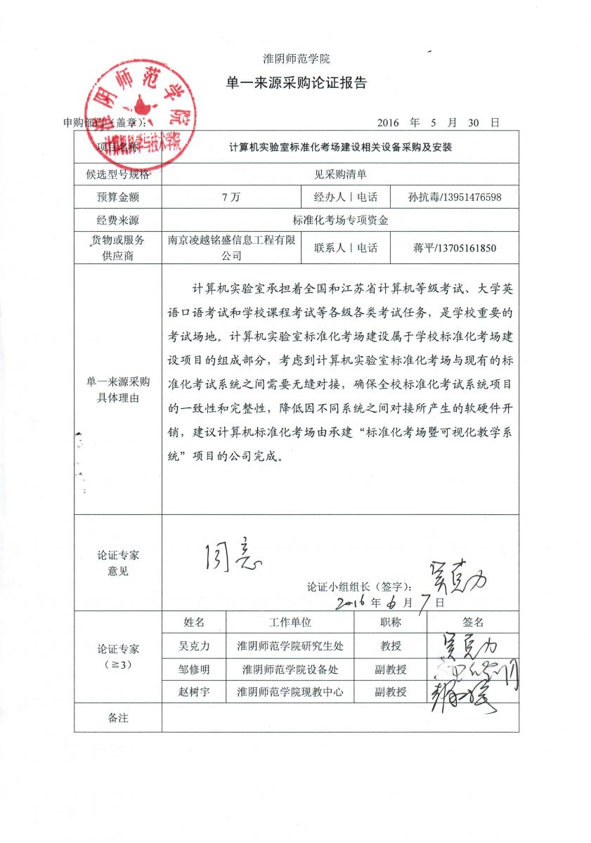 计算机实验室标准化考场建设项目单一来源采购论证报告
